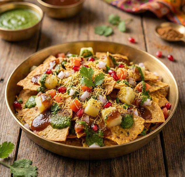 A crunchy twist on a classic snack, Khakhra Chaat blends crisp khakhras with tangy, spicy toppings. Every bite bursts with flavors that are both exciting and addictive!