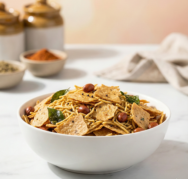 Khakhra Chivda is a crunchy, savory mix that turns everyday snacking into a flavor fiesta. A perfect blend of crisp khakhras, spices, and nuts for munching anytime, anywhere.