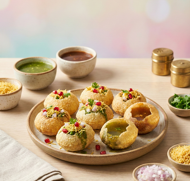 Pani Puri is the ultimate street snack that bursts with tangy, spicy, and sweet flavors in every bite. Crispy puris filled with zesty pani and flavorful stuffing make snacking a fun, lip-smacking experience!
