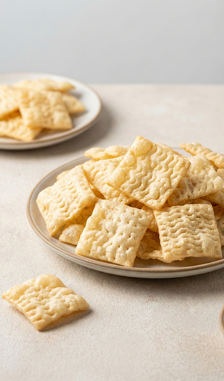 Crispy biscuit-shaped fryums with a delightful, melt-in-mouth texture.